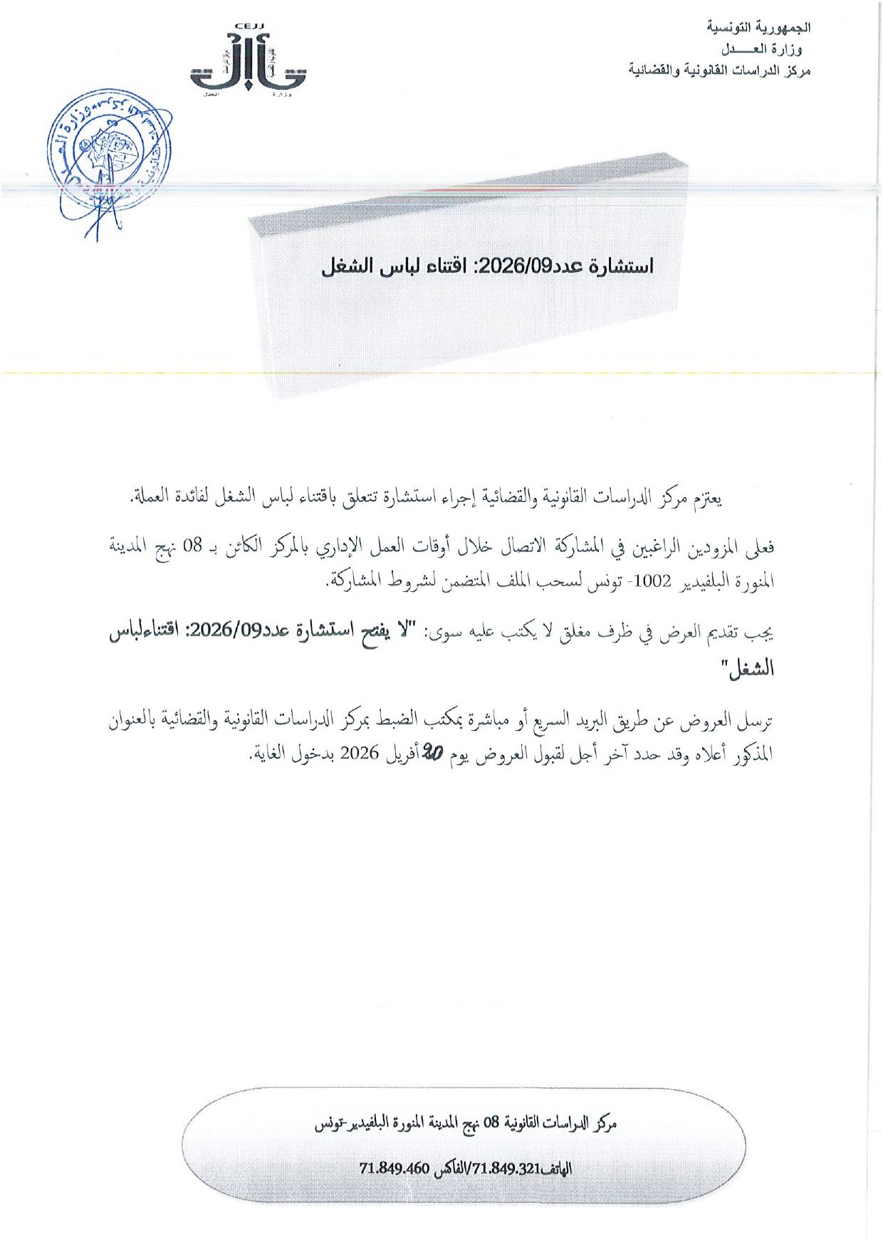 أحدث مركز الدراسات القانونية والقضائية بموجب القانون عدد 43 لسنة 1993 المؤرخ في 26 أفريل 1993. وهو مؤسسة عمومية ذات صبغة إدارية تتمتع بالشخصية المدنية والإستقلال المالي ويعمل تحت إشراف وزارة العدل وحقوق الإنسان.