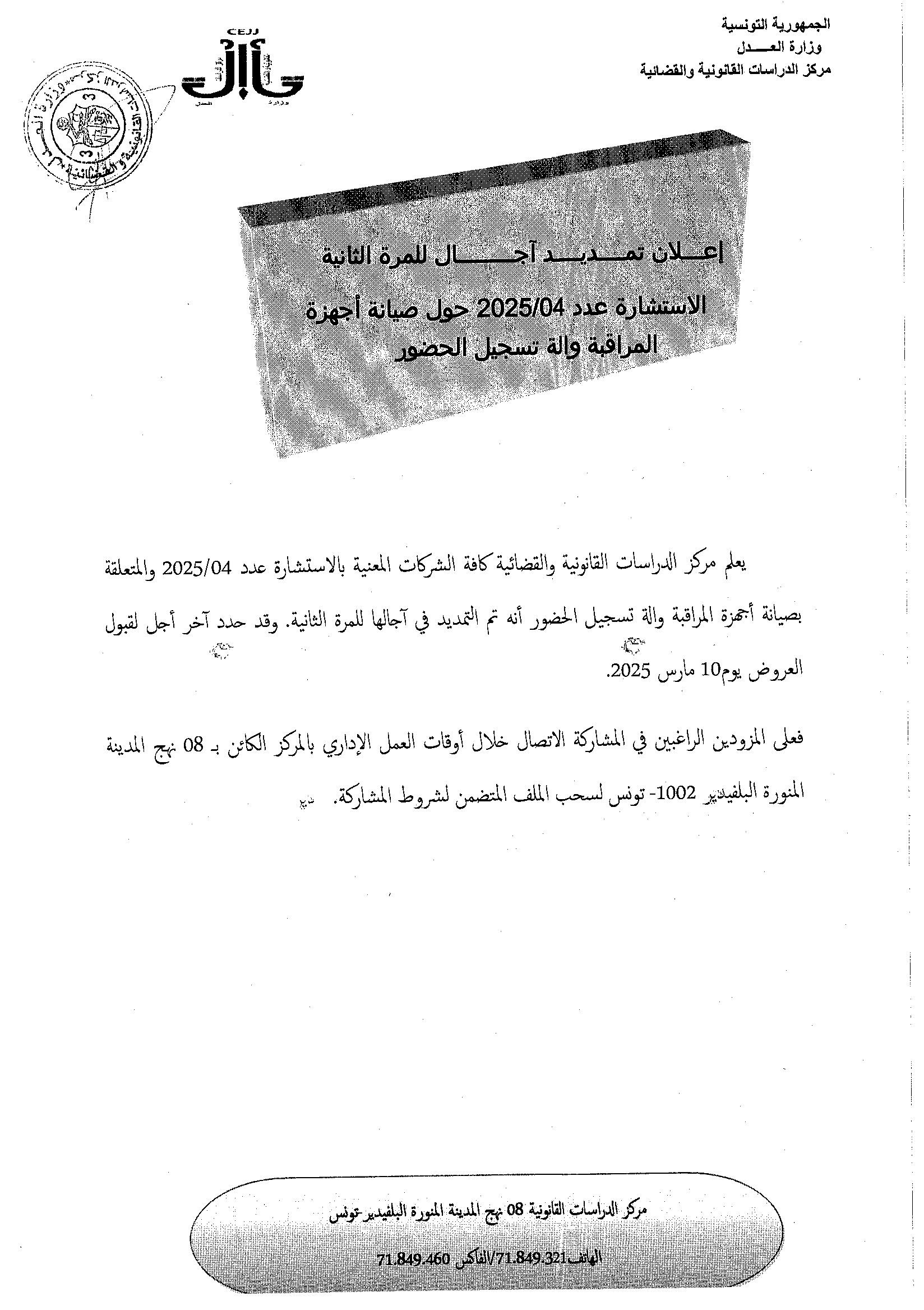 تمديد في اجال استشارة عدد 13/2025 حول اقتناء مفكرات بعنوان سنة 2026