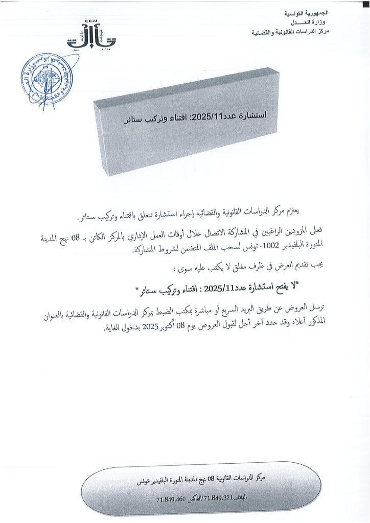 إستشارة عدد 11/2025 إقتناء و تركيب ستائر
