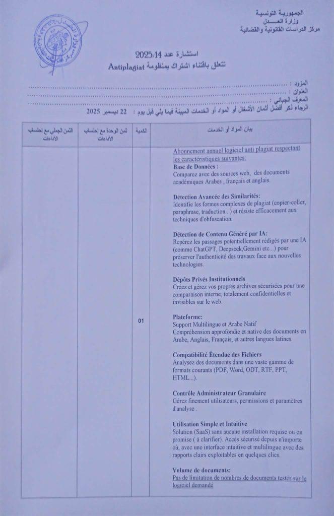 » إستشارة عدد 14/2025 إقتناء إشتراك بمنظومة