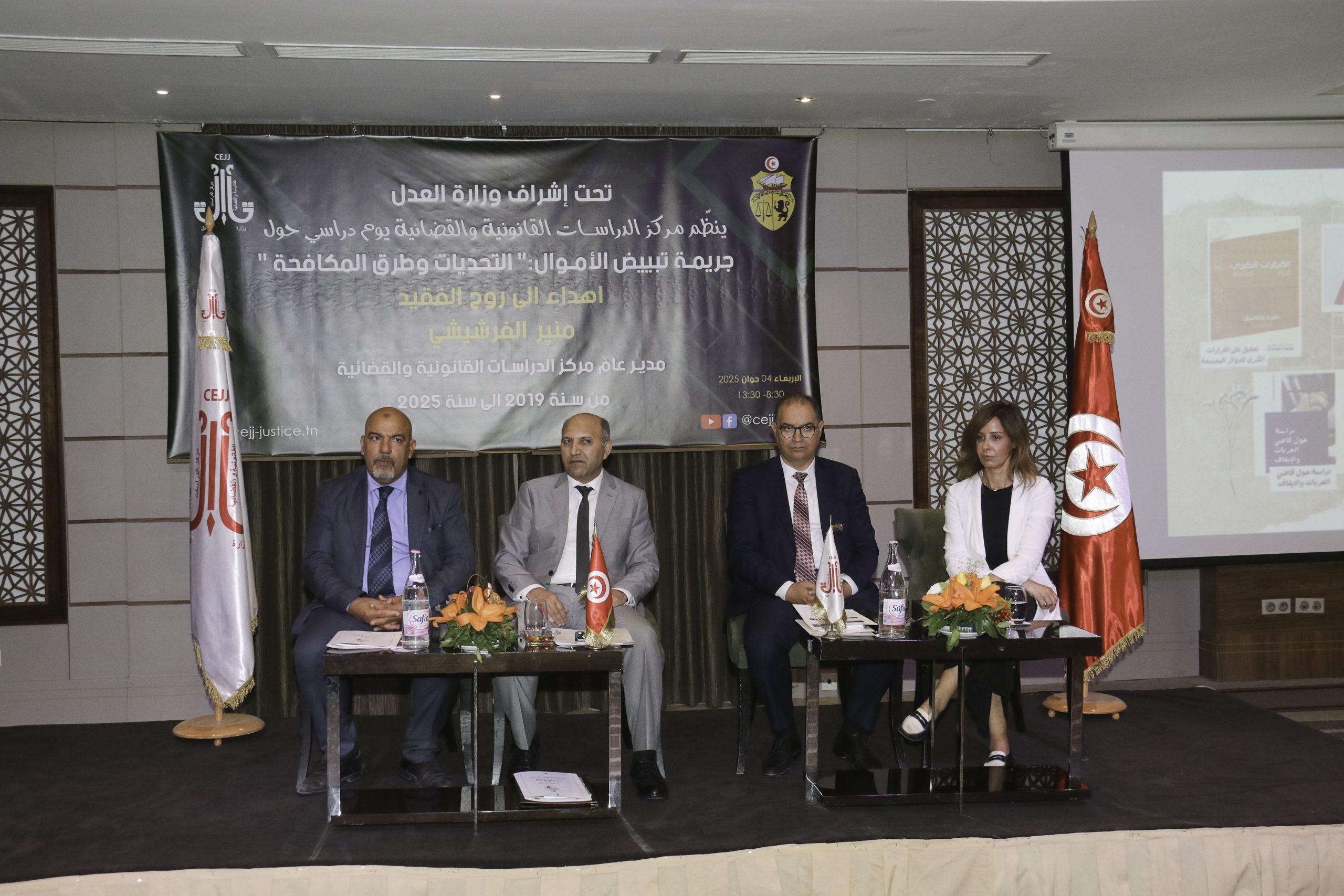 نظم مركز الدراسات القانونية والقضائية تحت إشراف وزارة العدل يوم دراسي حول ” جريمة تبيض الأموال، التحديات و طرق المكافحة ” و إهداءً إلى روح الفقيد منير الفرشيشي مدير عام مركز الدراسات القانونية والقضائية و ذلك يوم 04 جوان 2025 بنزل راديسون بلو تونس