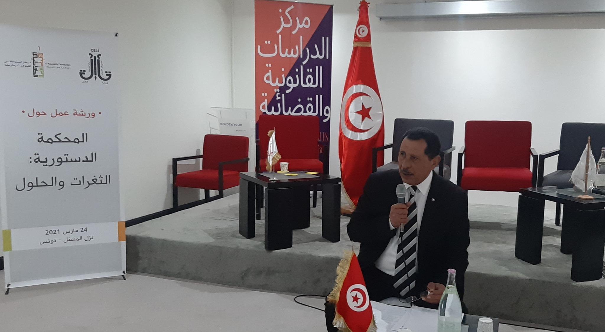 وقد مثلت الورشة فرصة هامة لعرض تقرير تمهيدي حول الموضوع من اعداد السيد طه الشابي قاض رئيس فريق بمركز الدراسات القانونية والقضائية. تم على إثرها تقسيم المشاركين على أربعة ورشات تم العمل فيها على كل من استقلالية المحكمة الدستورية تكوين المحكمة الدستورية واختصاصها الإجراءات المعتمدة امام المحكمة الدستورية والاثار المترتبة عن القرارات الصادرة عن المحكمة الدستورية. ويسر هذه الورشات خبراء وأساتذة القانون الدستوري السيد سليم اللغماني والسيدة سلوى الحمروني والسيد شفيق صرصار والسيدة سلسبيل القليبي.