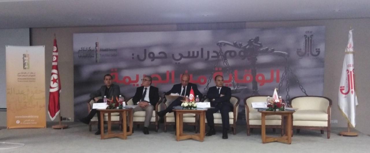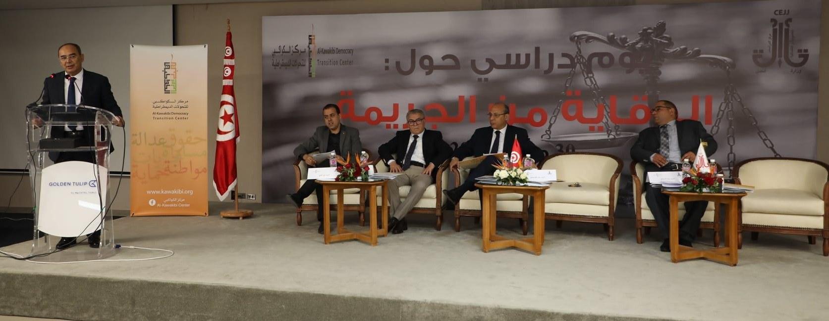 بالتعاون مع مركز الكواكبي للتحولات الديمقراطية تم تنظيم يوم دراسي حول “الوقاية من الجريمة” الذي مثل فرصة هامة من اجل الخوض في المسائل المتصلة بالوقاية من الجريمة وتوخي أفضل السبل الكفيلة لمنعها خاصة امام تشعب الظاهرة الاجرامية وتطورها وذلك بمشاركة أكثر من 80 مشاركا ومشاركة عن المؤسسات المتداخلة في الموضوع على غرار وزارة العدل ووزارة الداخلية ووزارة الشؤون الاجتماعية والهيئة العامة للسجون والإصلاح واللجنة الوطنية لمكافحة الإرهاب والإدارة العامة للديوانة وقضاة وقضاة تحقيق ووكلاء جمهورية ومحامين واخصائيين اجتماعيين وممثلين عن منظمات المجتمع المدني واعلاميين.