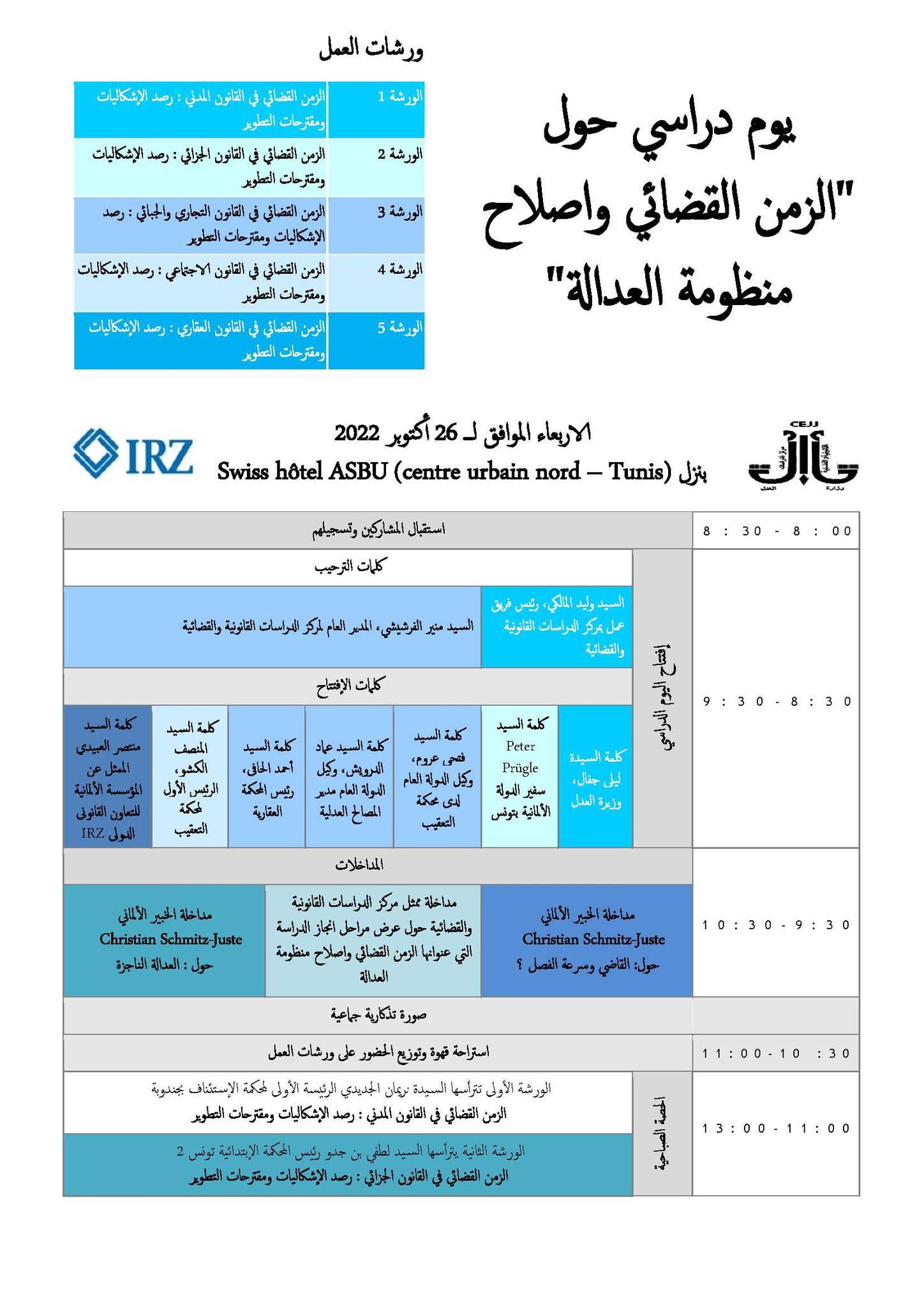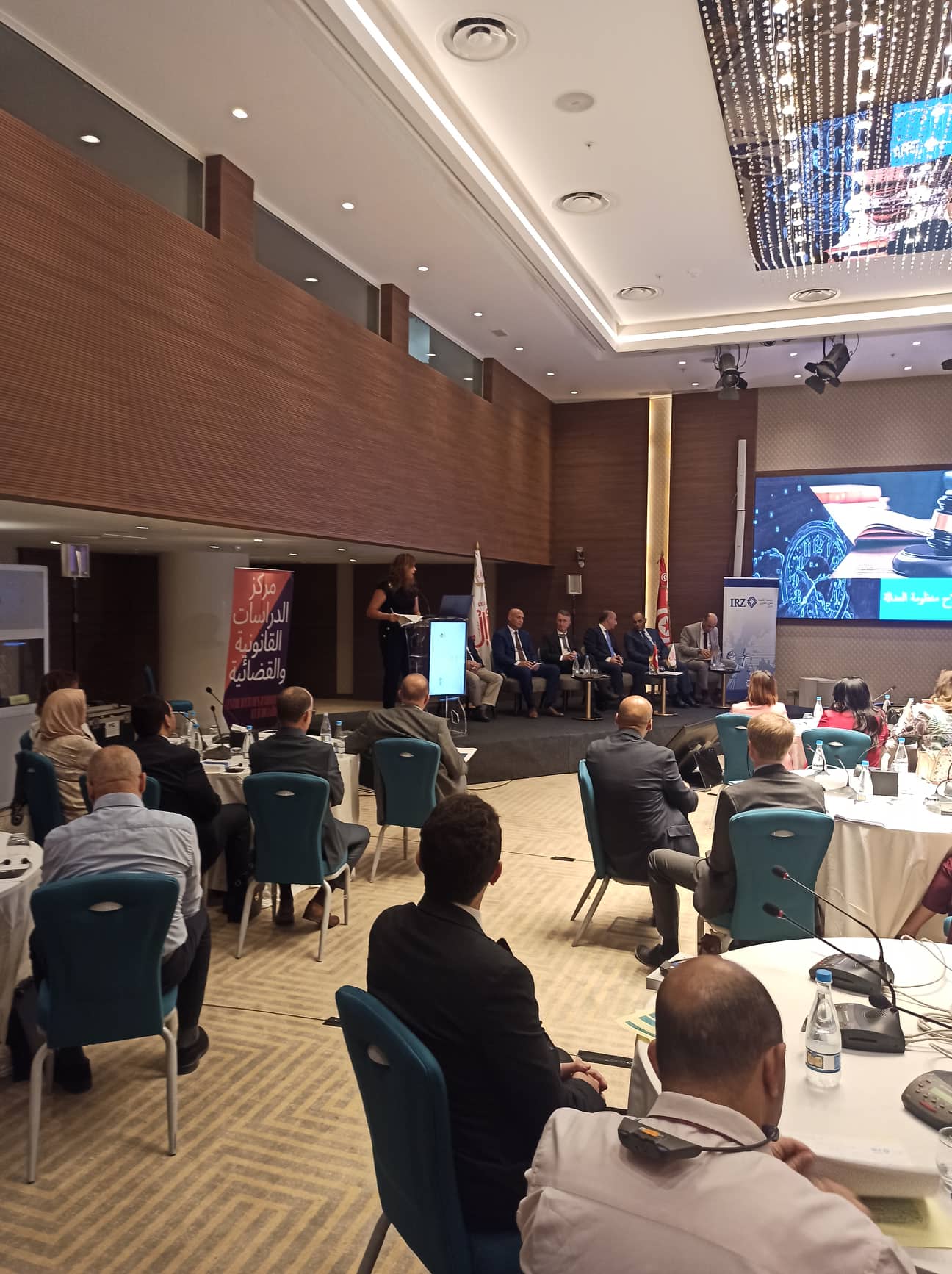 En collaboration avec le Centre d’études juridiques et judiciaires et sous les auspices du Ministère de la justice et la Fondation allemande pour la coopération juridique IRZ, une journée d’étude a été organisée pour présenter une étude sur le temps judiciaire et la réforme du système de justice, dans le cadre de laquelle le cadre conceptuel de l’étude, son importance théorique et pratique et les parties qui s’y rattachent sont présentés comme les problèmes que l’étude pourrait envisager, ainsi que les outils et mécanismes qui seront adoptés dans l’étude.