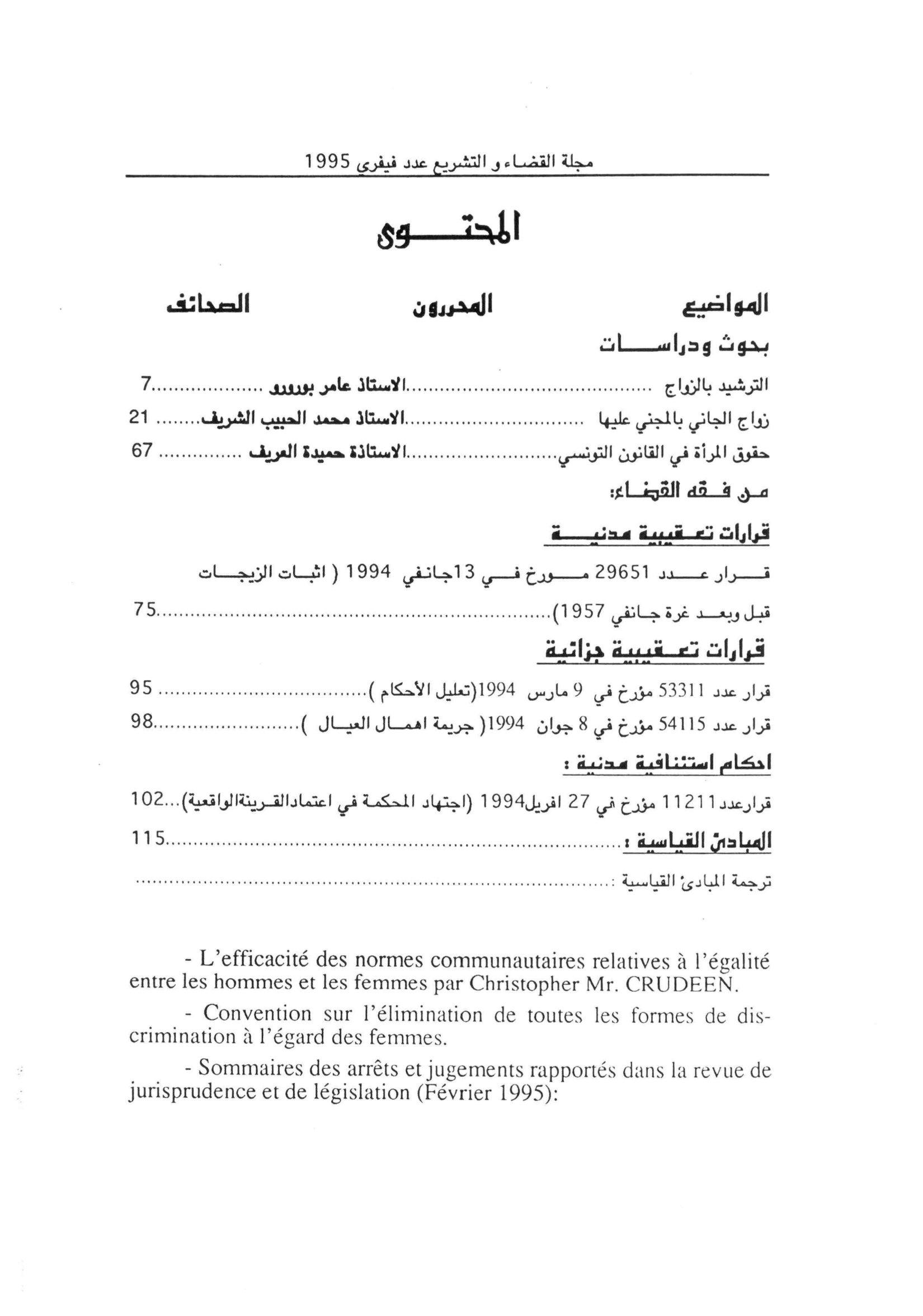 » » مجلة القضاء و التشريع فيفري 1995