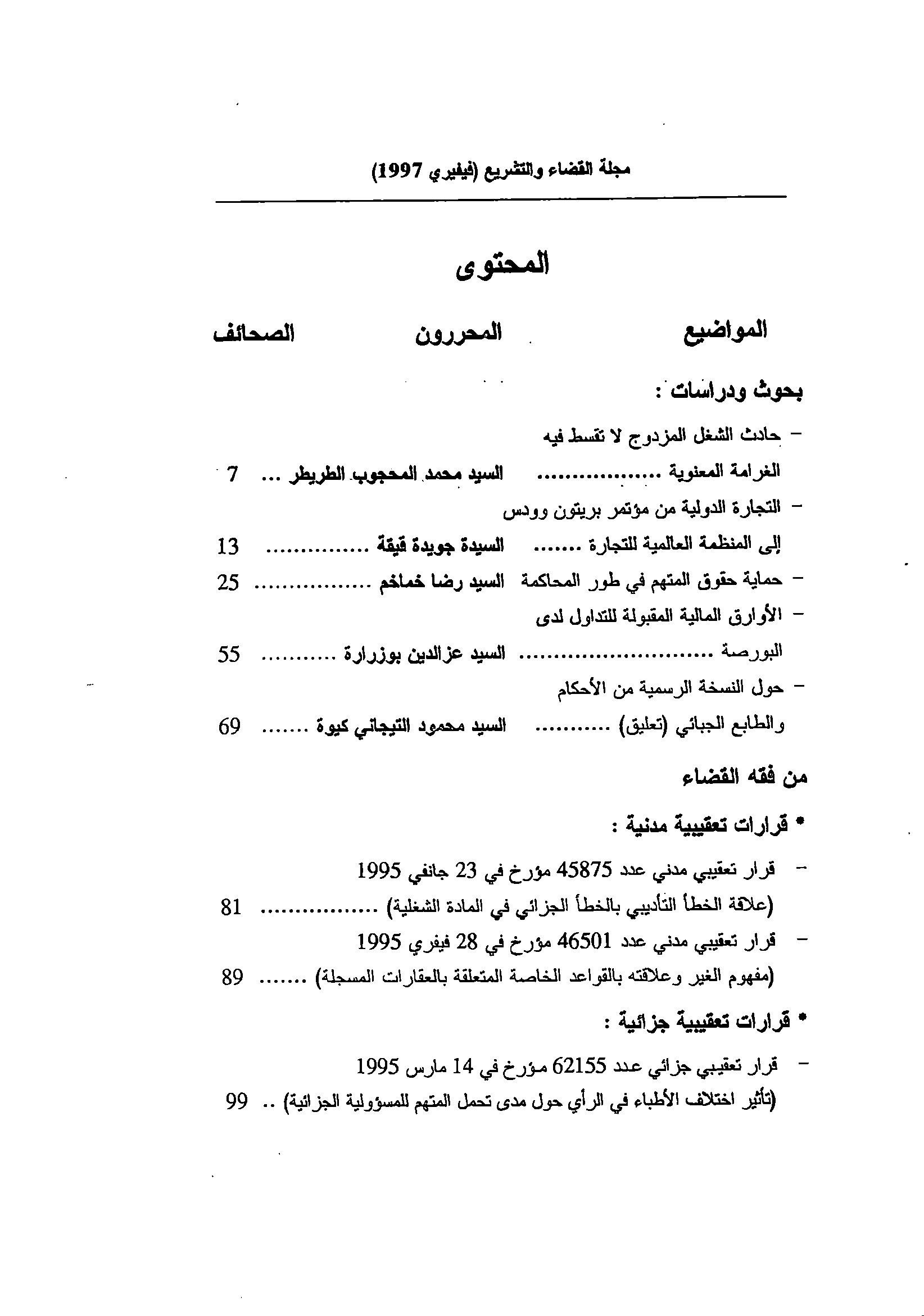 quantité de مجلة القضاء و التشريع فيفري 1997