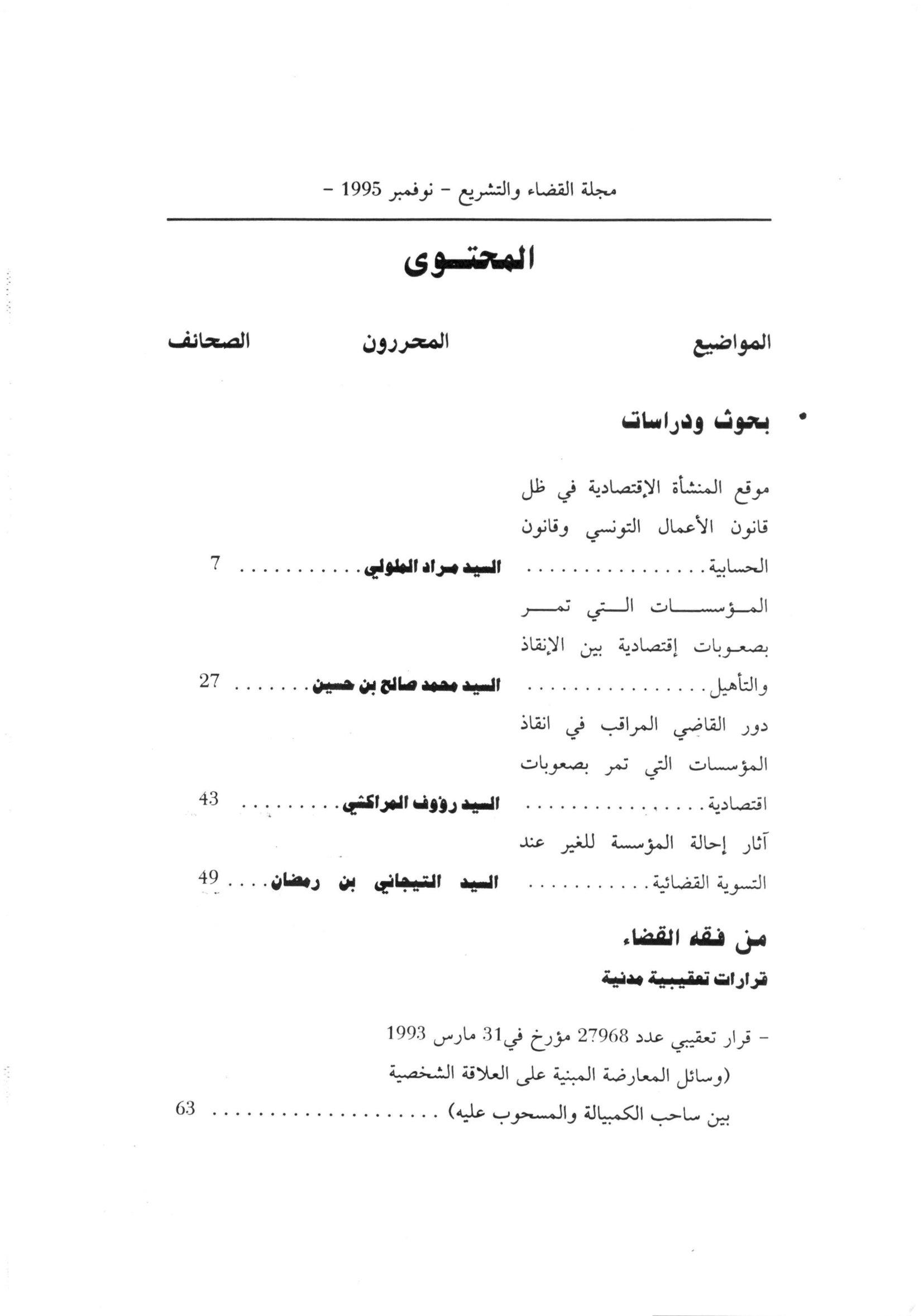 quantité de مجلة القضاء و التشريع نوفمبر 1995