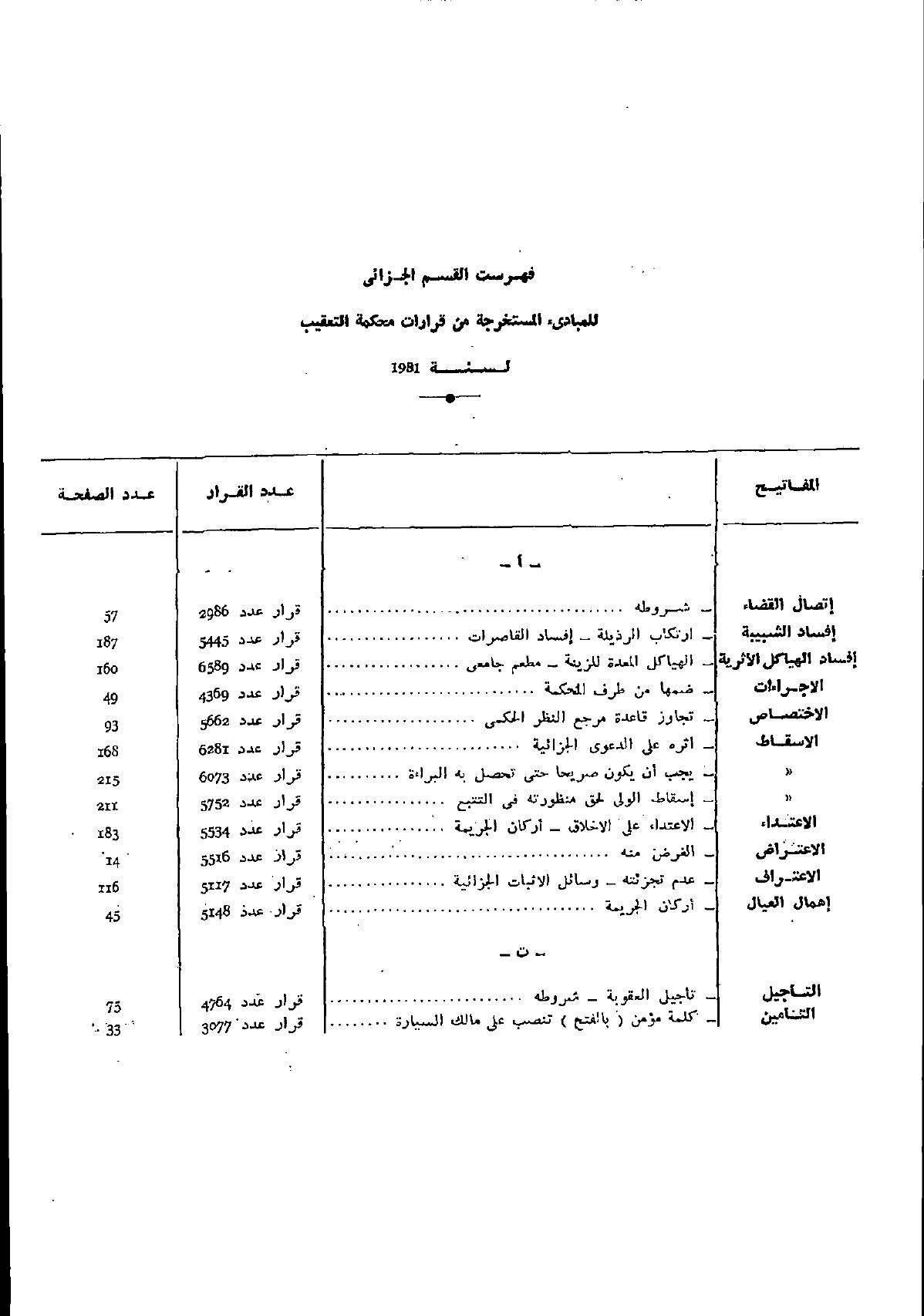 quantité de نشرية محكمة التعقيب - القسم الجزائي 1981