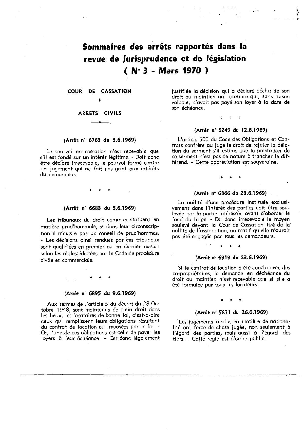 Revue de la Jurisprudence et de la Législation Mars 1970