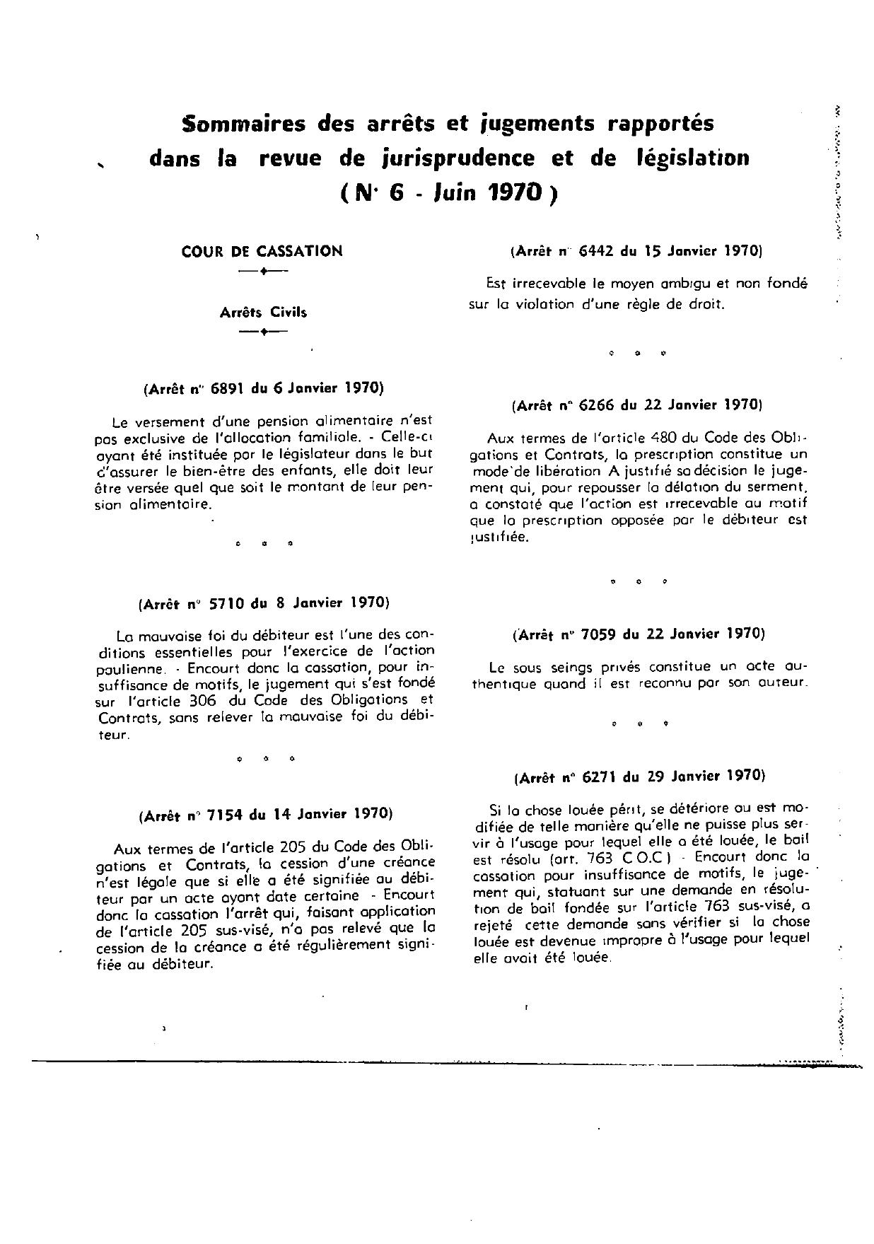 Revue de la Jurisprudence et de la Législation Juin 1970