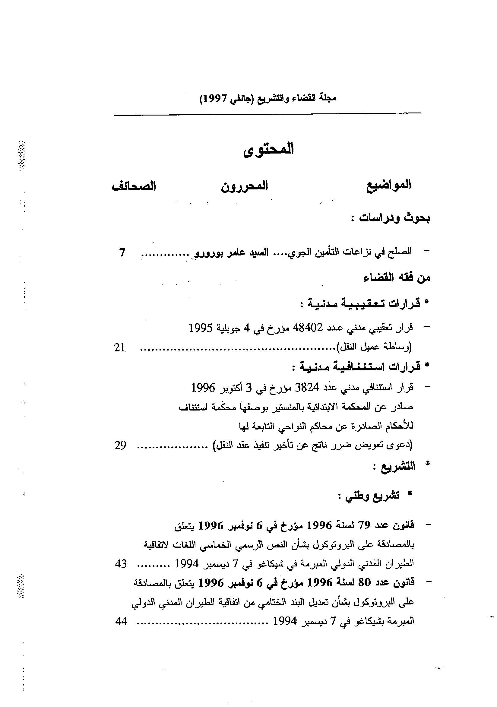 كمية مجلة القضاء و التشريع جانفي 1997
