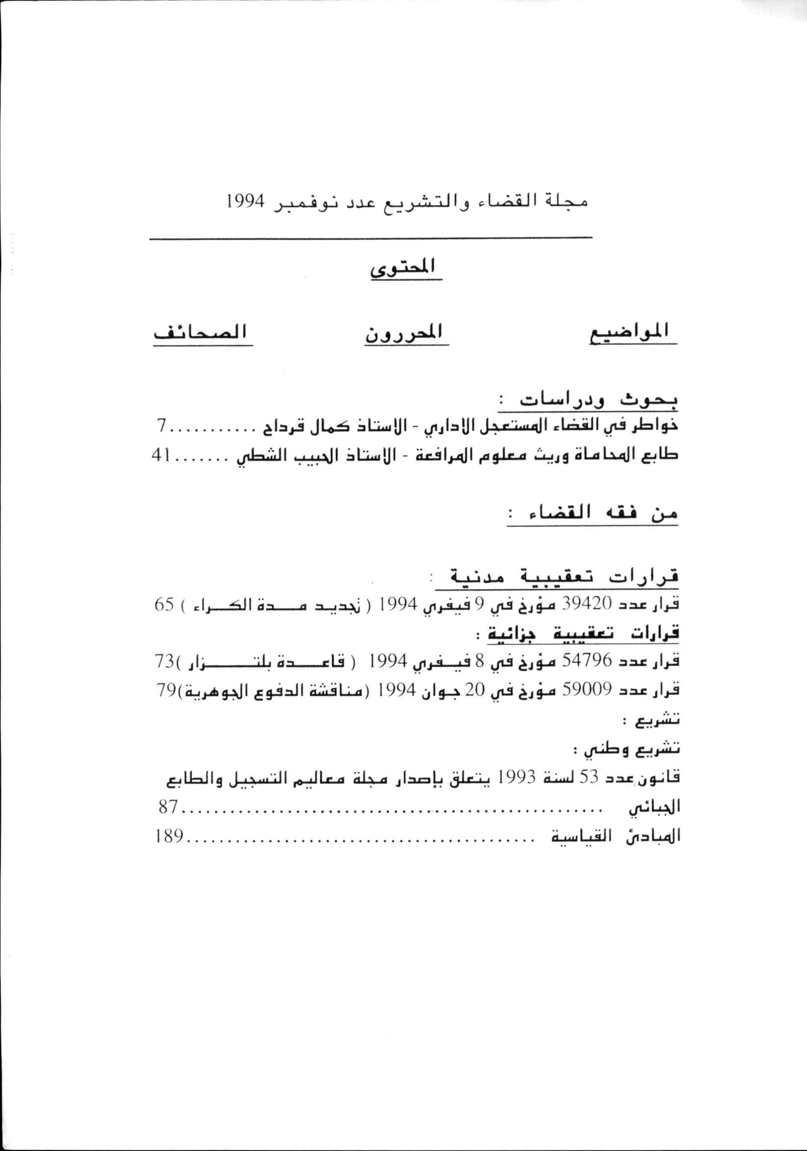 كمية مجلة القضاء و التشريع نوفمبر 1994
