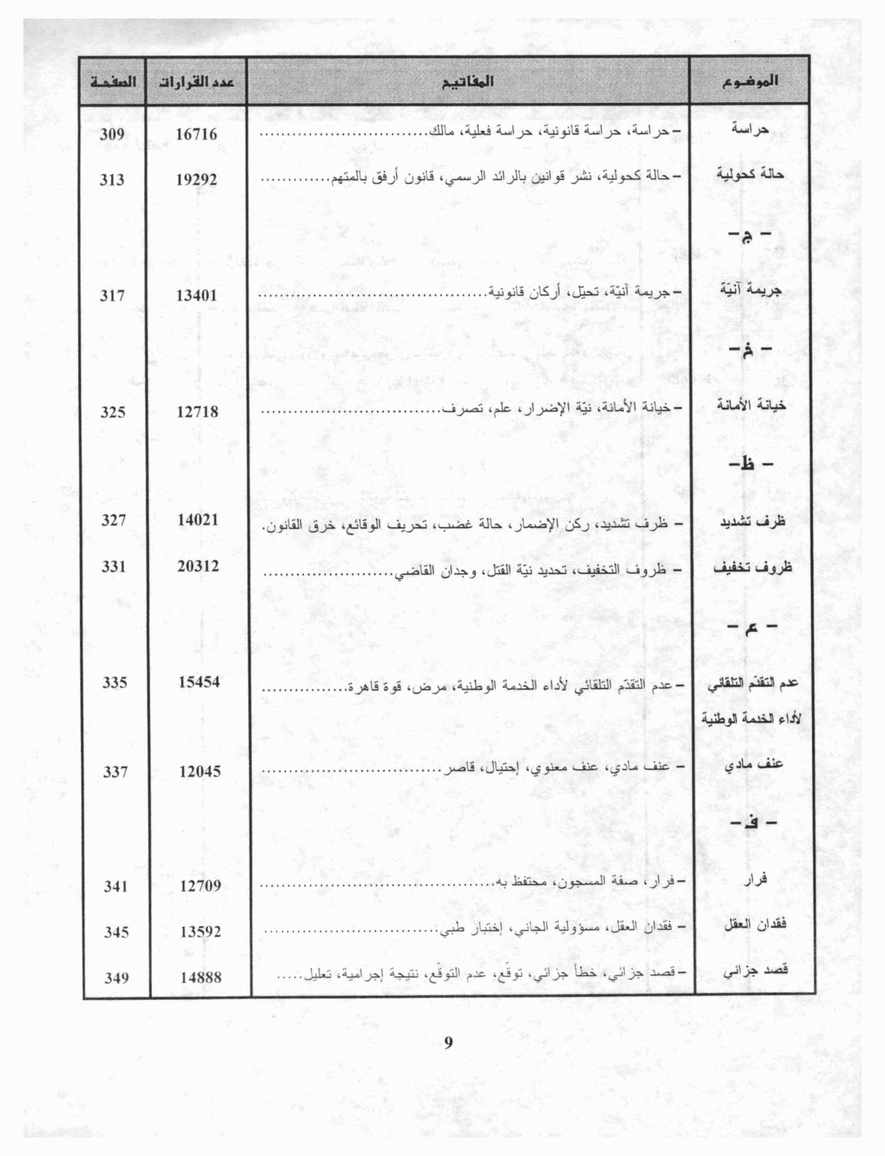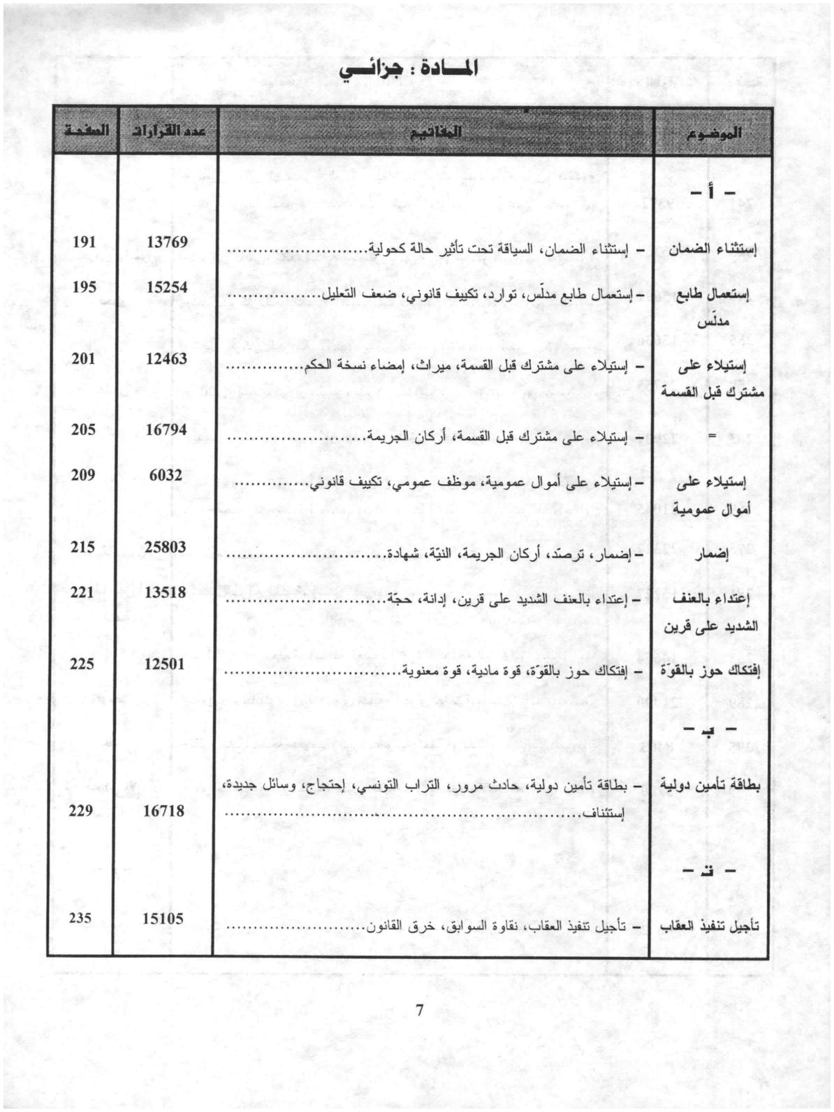 2020/2019/2018/2017/2016/2015/2014/2013 نشرية محكمة التعقيب – القسم الجزائي (عدد جامع)